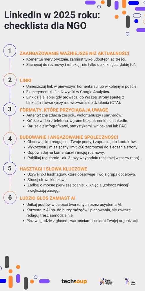 📄 Zapisz poniższą infografikę, aby mieć przy sobie checklistę do postowania na LinkedIn: